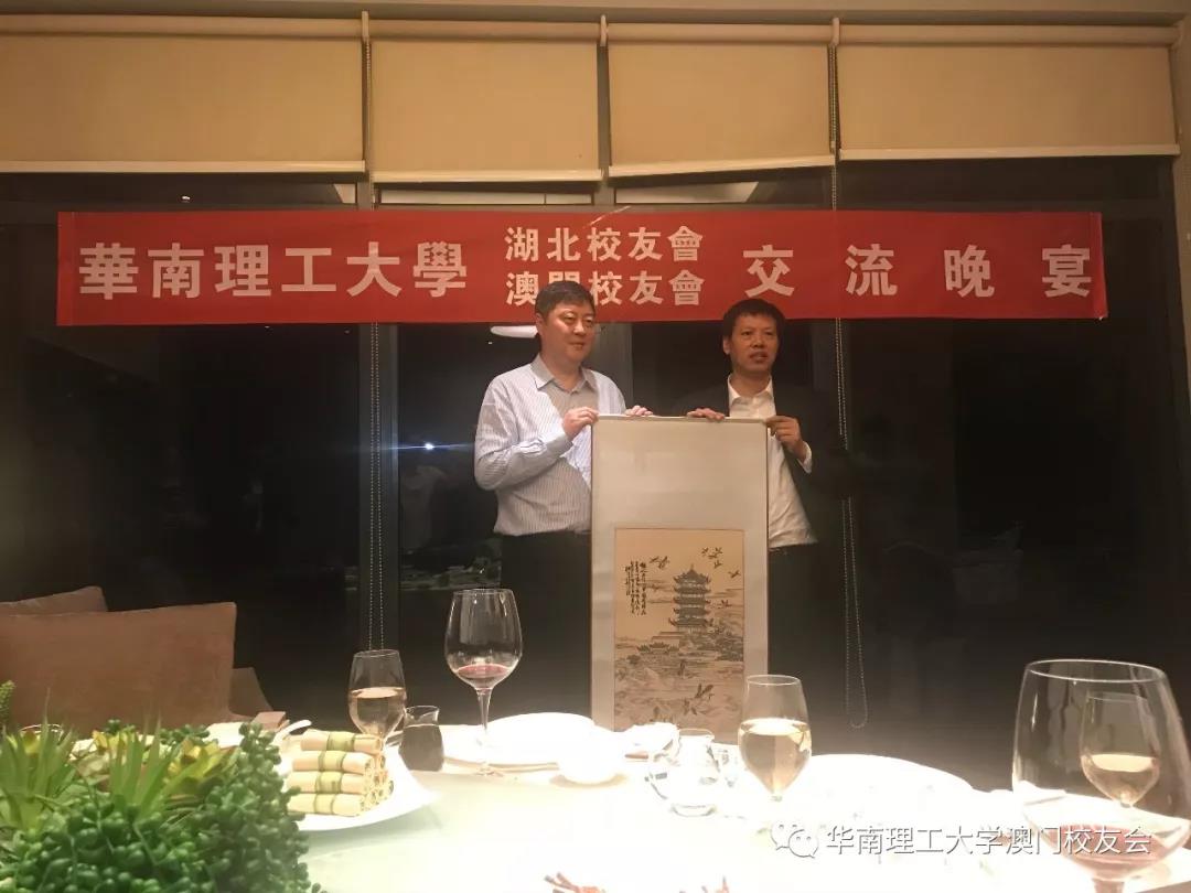 暢遊的同時,澳門校友會於31日晚在風光秀麗的東湖“湖濱客舍”與湖北校友會的代表舉行了交流晚宴,受到湖北校友會的熱情接待。澳門校友會出席的校友有會長劉毅翔、名譽會長吳北明、名譽會長譚任中、監事長吳德龍、副理事長曹若哲、副理事長兼財務部部長謝展鵬、副理事長徐凱文、外聯綜合部部長歐秀珊、文體部部長曾思敏、監事陳蕾伊、監事董適、校友黃文雄、校友江欽育、校友尤淑燕,以及校友家屬們;湖北校友會出席的校友有會長鄭海法、副會長鄧志剛、副會長何光喜、副會長趙玉林、秘書長劉治田。香港校友會的劉暉副會長剛好外遊至武漢,適逢其會,該晚亦應邀欣然到會,與鄂澳一眾校友共同歡聚於東湖湖濱。雙方校友晚宴期雙方校友晚宴期間暢談當年華工求學期間的趣聞軼事,回憶往事,展望未來,就校友工作發展進行了熱烈的討論,交流,學習彼此的工作經驗,受益匪淺;並表示往後雙方校友會要多交流,通過交流,大家感到時間短暫,意猶未盡,一致表示希望能夠緊密聯繫、優勢互補、務實合作、攜手共進,進一步加強交流與合作,加強互訪,取長補短,提高校友工作水準,更好地促進兄弟校友會彼此相關工作的開展。
